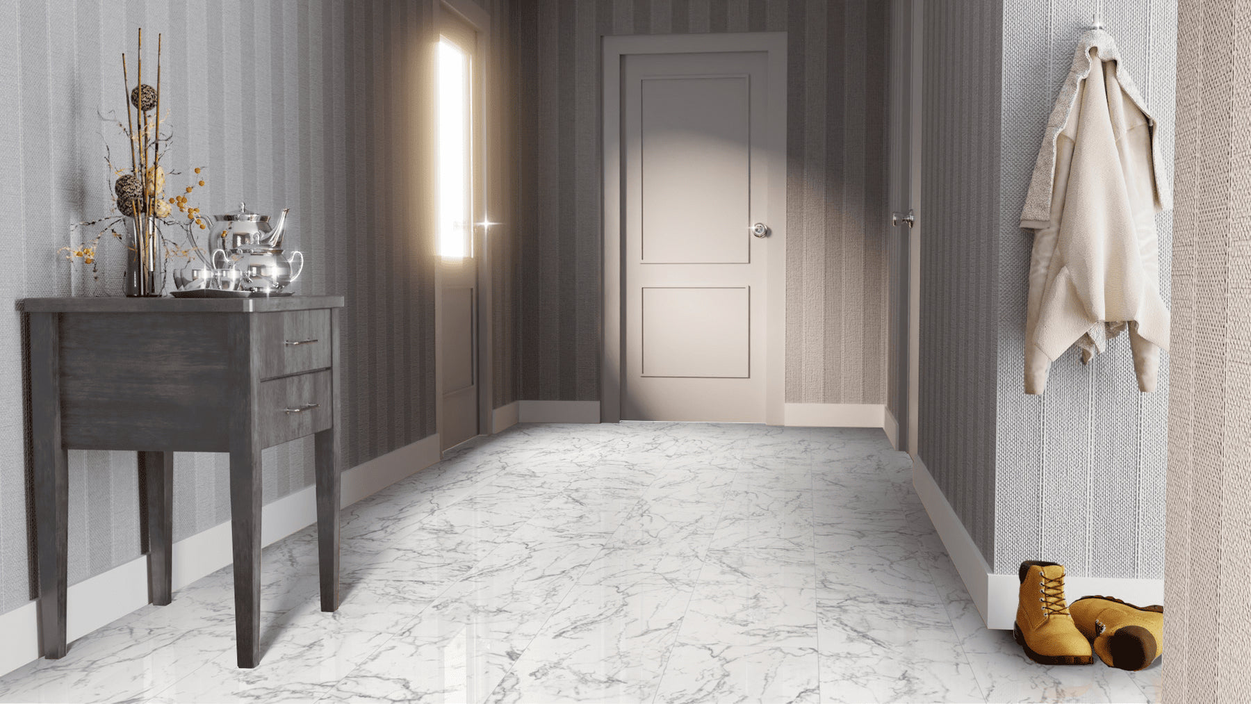 Kronotex Falquon Stone 2.0 XL Fliesenoptik Glamour Hochglanz Carrara Marmor Laminat