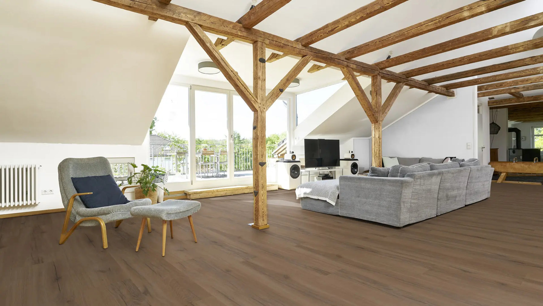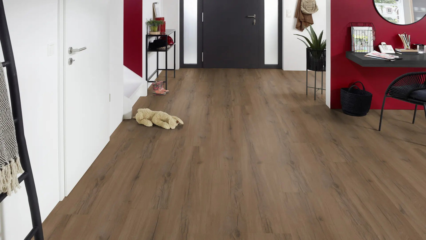 Dank der Holzsynchronprägung ist die Optik kaum von der eines Echtholz-Fußbodens zu unterscheiden. Die Matecta-Oberfläche bietet einen langanhaltenden Schutz vor Verschmutzung und Abnutzung – selbst bei starker Beanspruchung