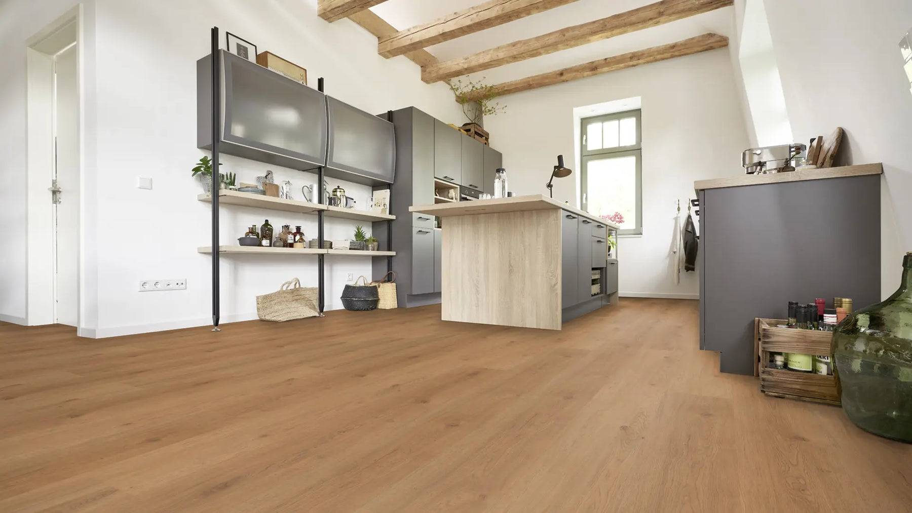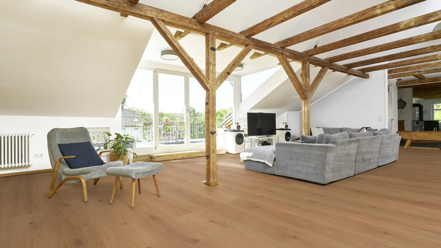 Dank der Holzsynchronprägung ist die Optik kaum von der eines Echtholz-Fußbodens zu unterscheiden. Die Matecta-Oberfläche bietet einen langanhaltenden Schutz vor Verschmutzung und Abnutzung – selbst bei starker Beanspruchung