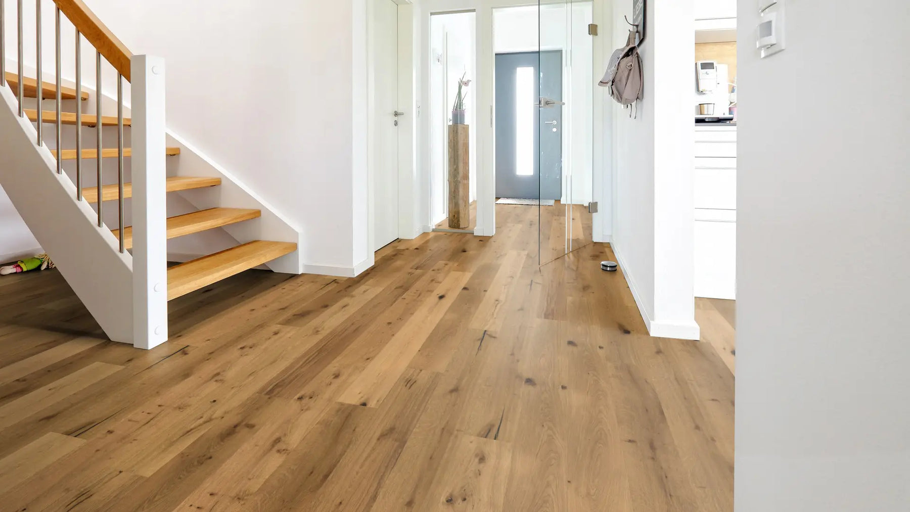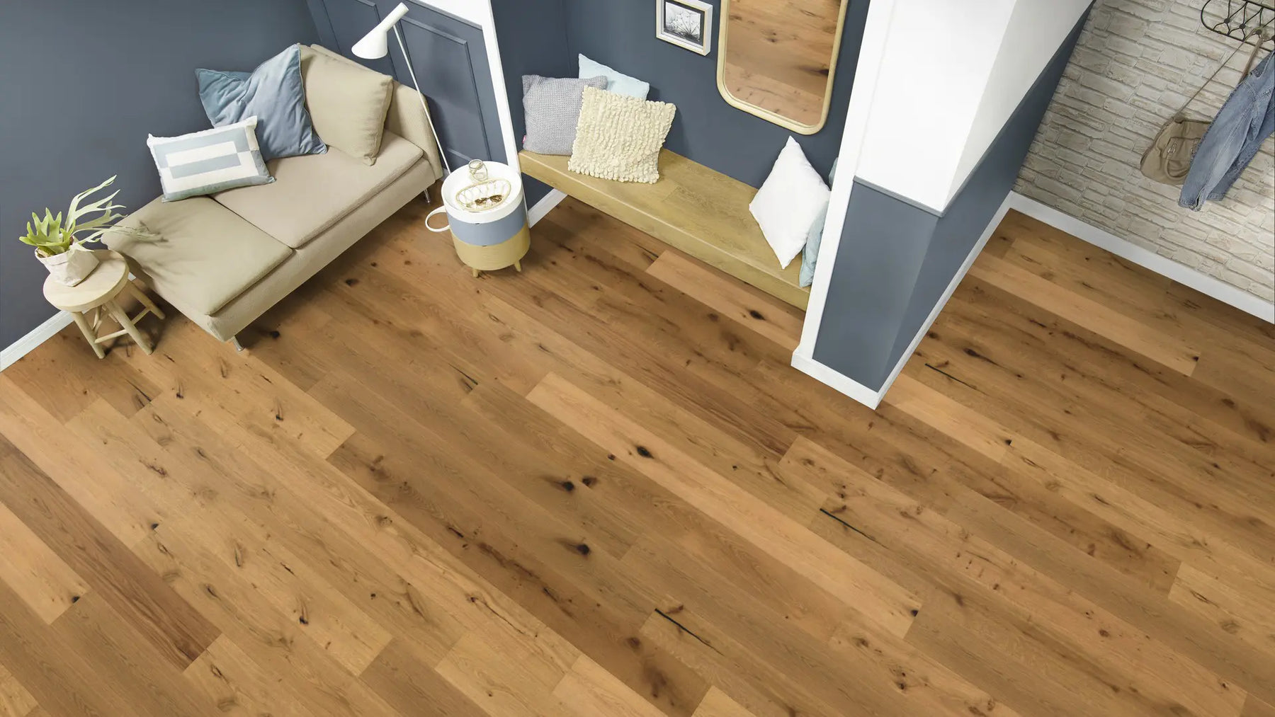 Die rustikal wirkende Landhausdiele betont mit ihrer 1-Stab-Optik den traditionellen Charakter eines echten Holzbodens. Dielen mit gefasten Kante vergrößern die optische Tiefe eines Raumes und verändern so die Raumatmosphäre.