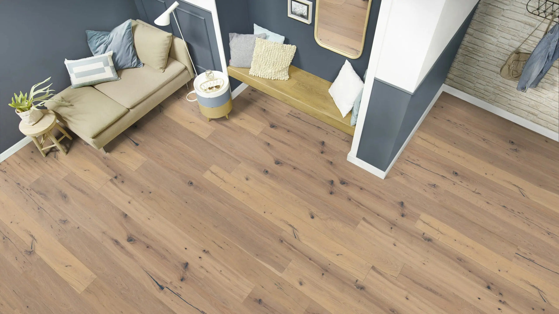 Die rustikal wirkende Landhausdiele betont mit ihrer 1-Stab-Optik den traditionellen Charakter eines echten Holzbodens. Dielen mit gefasten Kante vergrößern die optische Tiefe eines Raumes und verändern so die Raumatmosphäre.