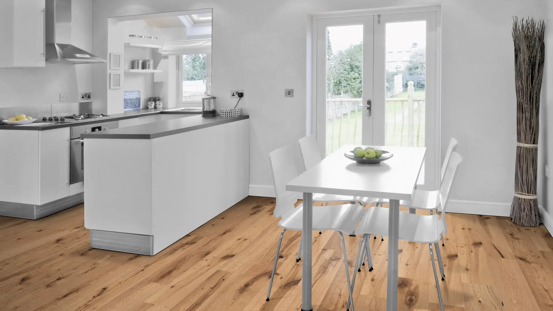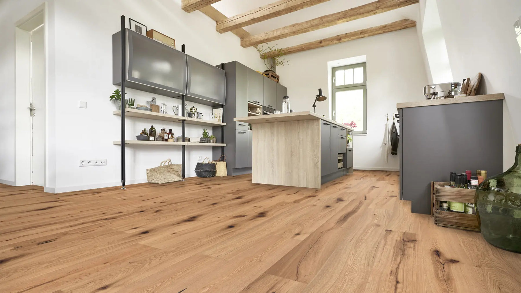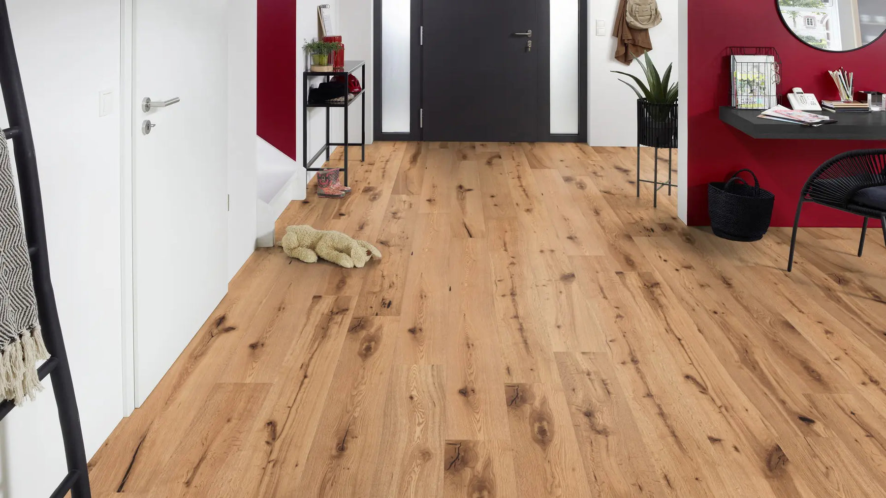 Die rustikal wirkende Landhausdiele betont mit ihrer 1-Stab-Optik den traditionellen Charakter eines echten Holzbodens. Dielen mit gefasten Kante vergrößern die optische Tiefe eines Raumes und verändern so die Raumatmosphäre.