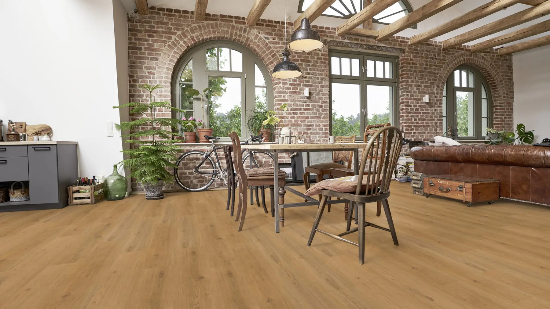 Dank der Holzsynchronprägung ist die Optik kaum von der eines Echtholz-Fußbodens zu unterscheiden. Die Matecta-Oberfläche bietet einen langanhaltenden Schutz vor Verschmutzung und Abnutzung – selbst bei starker Beanspruchung